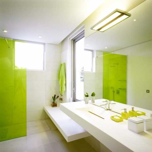 Дизайнеры советуют интересные решения – это отделка поверхностей белым цветом, а стены зелеными, или наоборот. Выглядит это достаточно эффектно.