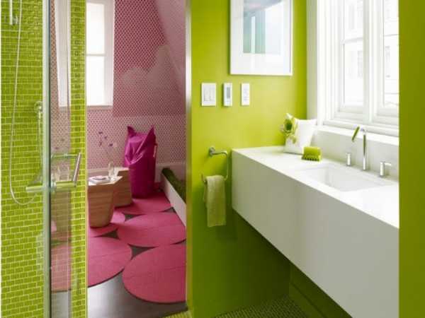 Такое решение сделает ванную по-настоящему сочной и яркой, что в целостности будет подходить по настроению всей семье.