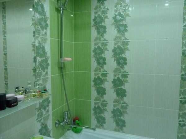 Центральную часть выложили зеленой плиткой, по бокам – плитка с имитацией мозайки.