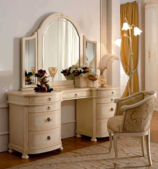Туалетные столики с зеркалом являются важнейшим предметом мебели в спальне женщины