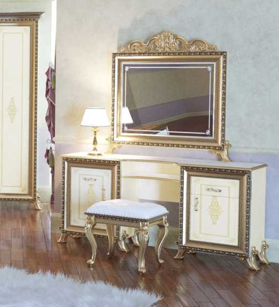 Роскошный туалетный столик для спальни.- Размер. Перед покупкой туалетного столика в спальню необходимо определиться с его месторасположением. Делается это во избежание несоответствия размеров. Также нужно оставить свободный доступ к изделию.