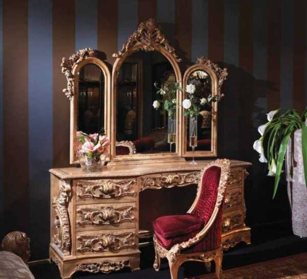 - Немаловажен и дизайн. Чем больше туалетный столик и чем затейливее украшен, тем выше его стоимость.