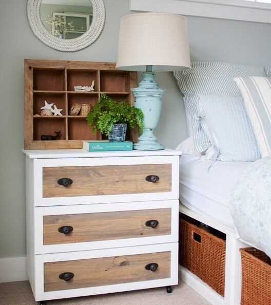 - Компактные тумбочки с выдвижными ящичками на колесиках, которые можно комбинировать между собой, создавая вместительные (одно- или разноцветные) модули;
