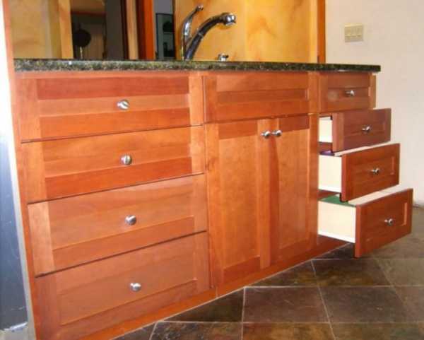Если вы не хотите каждый раз нагибаться, чтобы достать из-под раковины нужную вещь, то лучше поискать тумбу с выдвижными ящичками. Причем, размеры ящичков желательно продумать заранее, а для этого надо знать, что в них будет храниться.