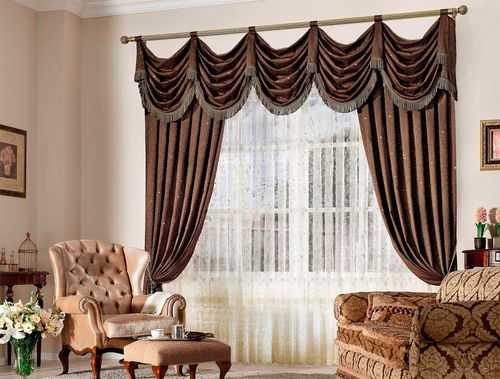 На кулисе могут быть не только сами портьеры, но и входящие в общий оконный «ансамбль» отдельные ламбрекены.