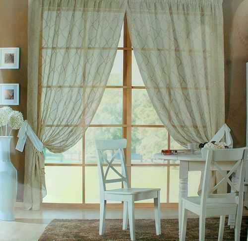 Не стоит бояться оригинальных тканей, например, льняного тюля, который несколько грубоват, но экологичен и прекрасно вписывается в интерьер типа прованс.