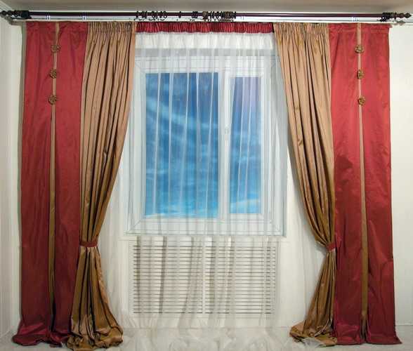 Эксклюзивно будет смотреться окно, где будет будут сочетаться разные материалы, например, занавески из тяжелой шелковой ткани и тюли.