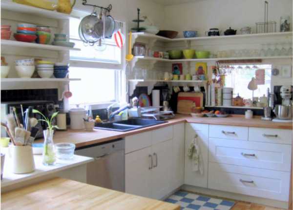 - Вся кухонная утварь, расставленная на ней, находится в поле зрения. На поиски нужного предмета уходит меньше времени, чем в закрытых шкафах.