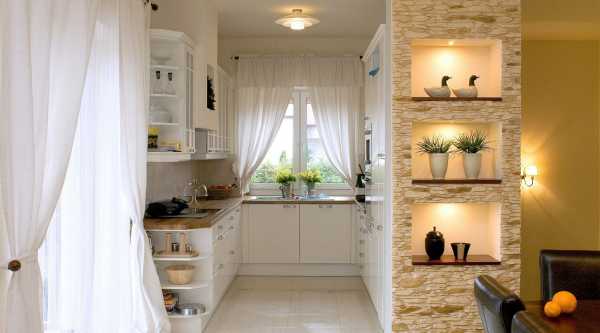 Чем прочнее будут полки, тем безопаснее их разместить в углу ближе к потолку, надежно прикрепив к стенам. Такую угловую полку теперь можно часто видеть в маленьких кухнях.