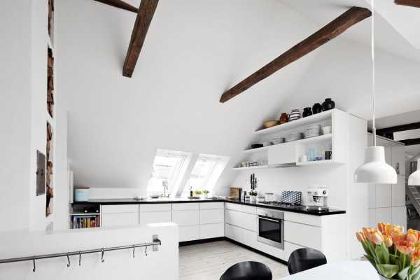 - Удачное дизайнерское решение создает впечатление увеличенного пространства кухни.