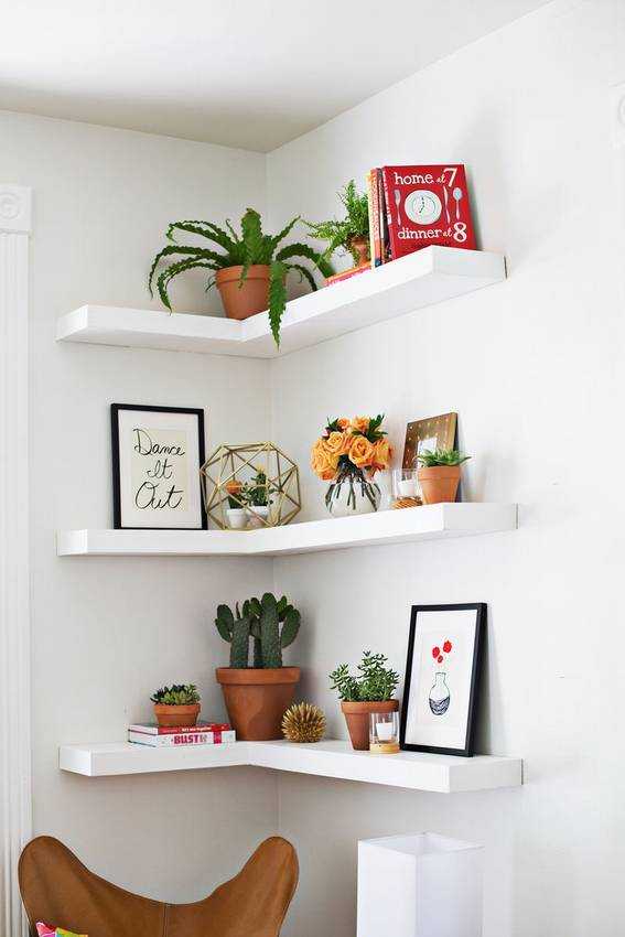 Угловые полки в интерьере — 94 фото функционального обустройства
