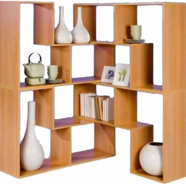 Для небольших комнат хорошим решением будет размещение полок углу.