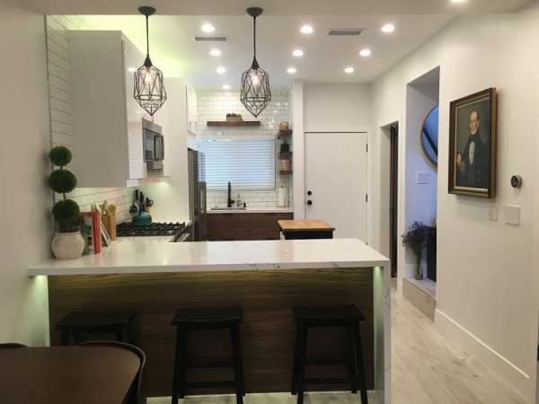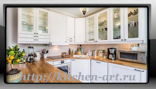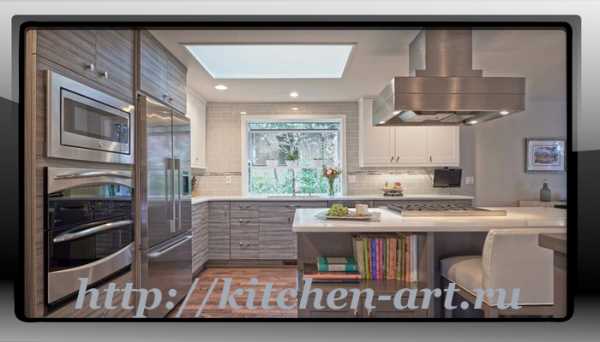 Такой вариант можно отнести к компромиссному, который объединит угловой и параллельный способ размещения. Используется в помещениях, у которых хорошая ширина. Также бывают случаи, когда используется в маленьких кухоньках.