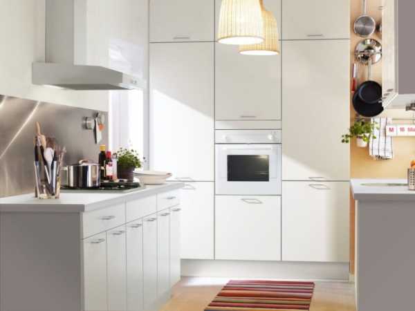 При таком обустройстве кухни даже на самой минимальной площади можно организовать максимально удобную рабочую зону. С точки зрения чистоты это очень удобно. Когда мойка расположена в углу, плита и разделочный стол – это уже значительное уменьшение загрязнения. Поэтому, если у вас небольшая кухня, можно смело использовать именно такой вариант обустройства. А поможет сделать выбор вам Икеа кухни каталог 2017!