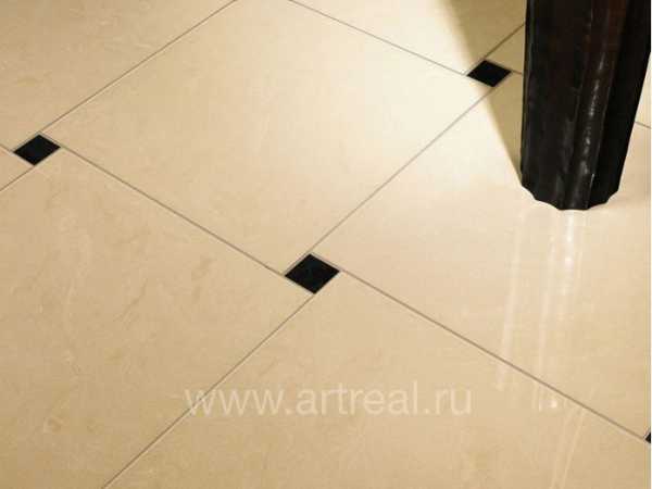 Иногда у напольной плитки уголки «подрезаны» специально под укладку со вставками по углам.