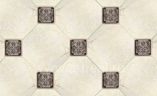 В некоторых коллекциях керамогранита, например, Italon Prestige или Ariana Convivium присутствуют керамические вставки, подходящие к основной плитке по цвету, фактуре и толщине. Если же в коллекции их нет, можно отдельно приобрести декоративные вставки из металла — латуни или бронзы. Металлические вставки бывают разного размера, однотонные и цветные, гладкие и рельефные.