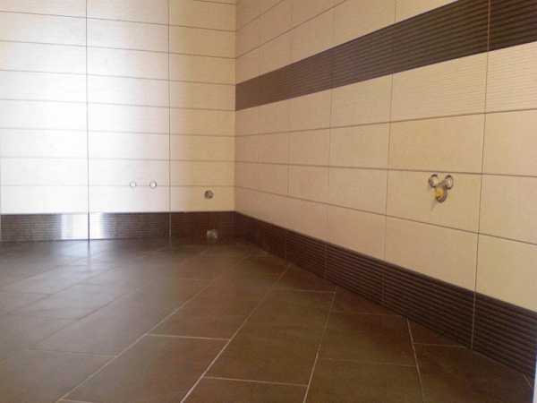 Так же следует сказать еще об одной особенности. Вся плитка имеет фаску. При этом фаска закругленная. Эта фаска предназначена, чтобы не было острых краев. При резке плитки фаску сделать нельзя, а, следовательно, плитка будет иметь острый край. Затереть такую плитку очень проблематично. Поэтому при укладке резанный край всегда примыкает к углу или стене, в дальнейшем он закрывается плинтусом.
