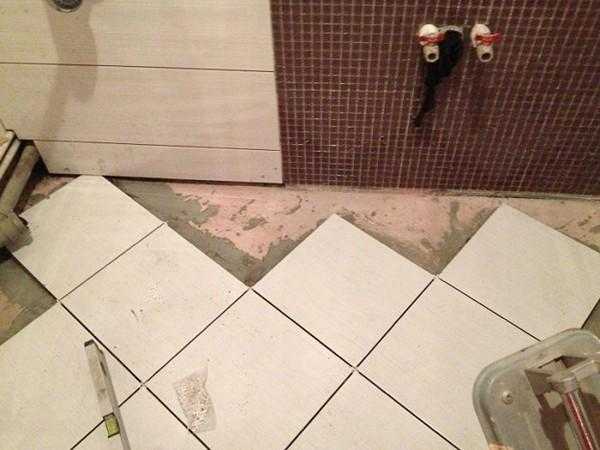 Однако если плитка укладывается под углом 45 градусов, то также следует точно позиционировать плитку относительно стены. Все дело в визуальном восприятии. Несмотря на то, что плитка расположена под углом неровное сопряжение со стеной все время будет давать ощущение того, что плитка уложена не ровно.
