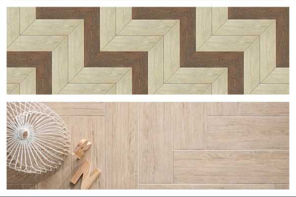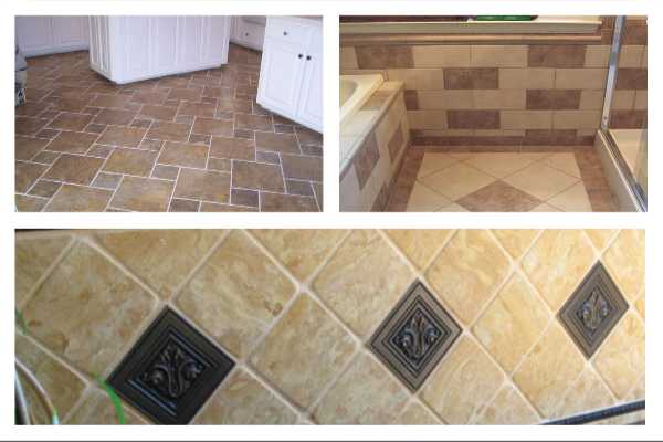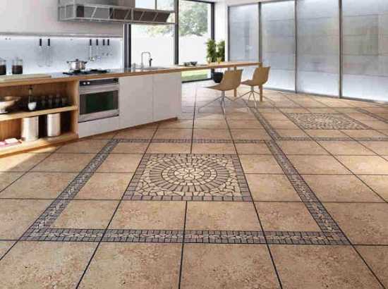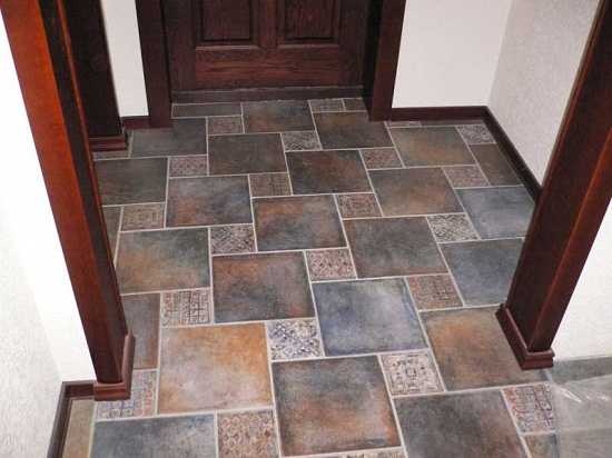 Существует несколько вариантов сочетания вставок с основной напольной плиткой.