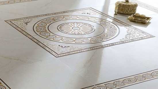 Рис.5. Узорный способ укладки плитки хорошо будет смотреться в больших просторных помещениях. Обычно для этого способа выбирается специальная плитка с узором нанесенным производителем.
