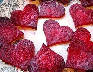 Можно украсить свекольными сердечками салаты или другие блюда, приготовленные ко Дню св. Валентина.