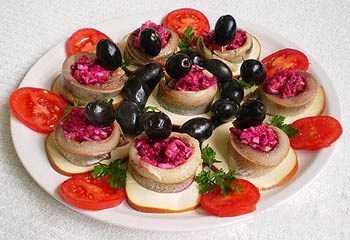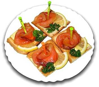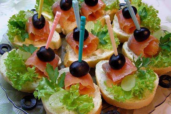 Бутерброды для праздничного стола отличаются от повседневных, более дорогими продуктами (деликатесами).