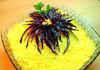 ![]() | «Хризантема» из белой части лука-порея. | |||