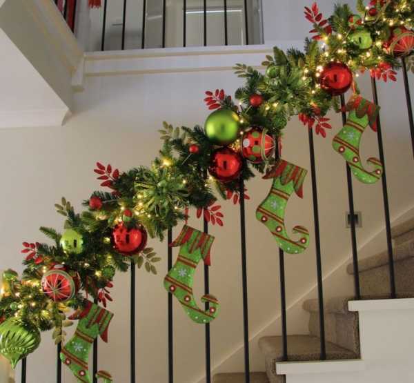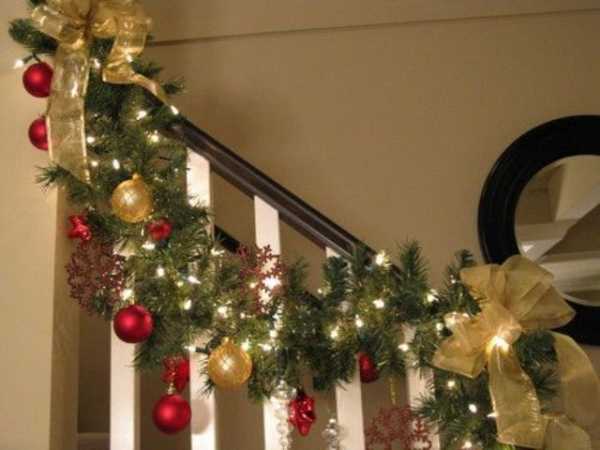 Но в случае, когда нет времени на хенд-мейд украшения такого размера (ведь в длину перила могут достигать нескольких метро), лучше оформить лестницу готовой гирляндой, вариантов которой в специализированных магазинах много — на любой вкус и кошелек.