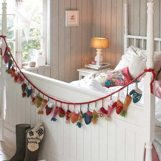 Если у вашей кровати металлическое изголовье, куда можно прикрепить пару гирлянд, почему бы его не использовать. Зимой проводить вечера в такой кровати будет намного уютнее.