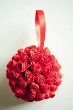 Еще более простой вид делается из длинной полоски с волнистым краем (сворачиваем по спирали). Чаще всего такие цветы крепят к потолку на специальных монтажных крючках (например, серия Command), которые легко удаляются с любой поверхности, кроме бумажных обоев.