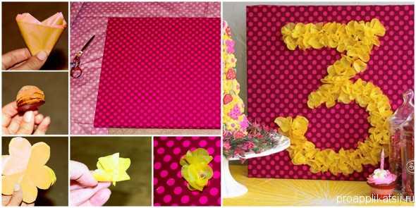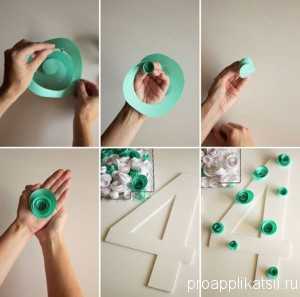 Красиво смотрится, когда цифра шириной в три цветка и из контрастного цвета бумаги.