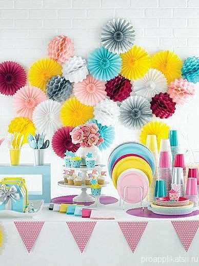 Разноцветными веерами мы оформляли свои мероприятия уже давно, но раньше их приходилось вырезать, складывать и склеивать самим декораторам. Поверьте, это только кажется, что такое украшение можно сделать быстро. Увы…
