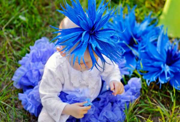 С помощью гофробумаги можно создать крутые образы для фотосессий. Любой девчонке понравится затея превратиться в нежный василек, Алису в Стране Чудес или сказочную фею.