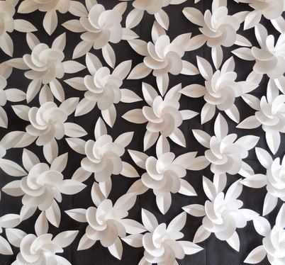 Разместить готовые украшения можно на потолке, стенах, тюле либо портьере. Оригинальный вид имеют огромные цветы, которые размещены на полу.
