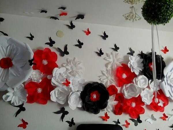 разнообразны. Можно украсить жилище большими цветами из цветной бумаги,