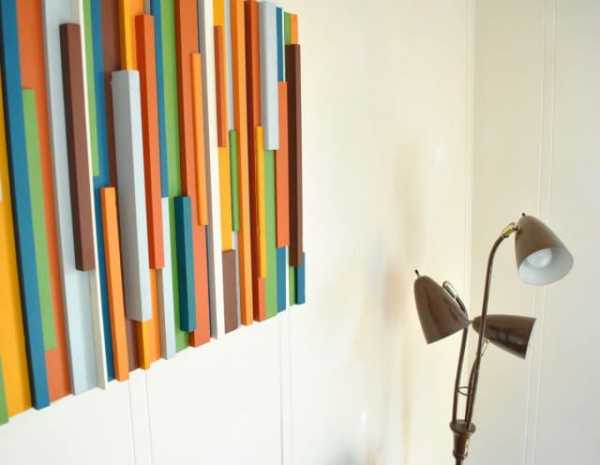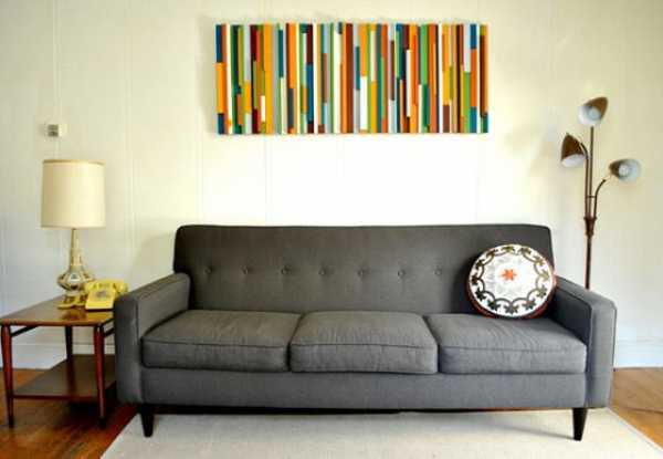 Получается разноцветное яркое панно — радуга, которое можно разместить над диваном.