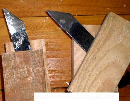 Разные типы ножей для резьбы по деревуЧтобы изготовить нож-резак понадобятся инструменты: пила, напильники, кузнечный горн или другое приспособление для термообработки и эпоксидный клей.