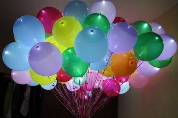 Светящиеся шарики. Фигуры или отдельные шары со светодиодами – это эффектное украшение любого торжества. Ребенок будет очень рад необычному, оригинальному декору. Шары могут быть светящимися белыми или разноцветными с мигающим светом или постоянным.