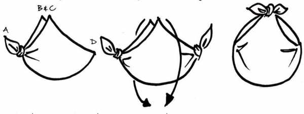 - Фуросики сначала сворачивают по диагонали так, чтобы лицо было вовнутрь