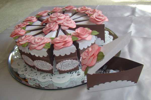 Декорировать каждый кусочек можно разнообразно. Создавая эту упаковку в праве «испечь» шоколадный, сливочный и даже фруктовый торт, а украсить его можно кофейными зернами, лентами, кружевами и бусинами.