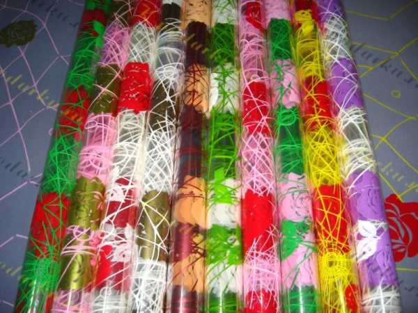 Во флористических магазинах этот гибкий и прочный материал часто представлен такими вариантами: