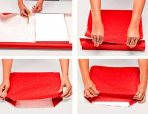 - Складывайте стороны бумаги, чтобы обернуть подарок