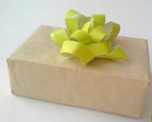 подарок, упакованный лентой- Подготовьте подарок, заранее упакованный в бумагу