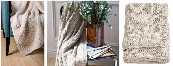 Шерстяной вязаный плед ручной работы Viawool (под заказ). Плед ажурной вязки Zara Home – 5 999 р. Хлопковый плед из трикотажной пряжи H&M – 3 499 р.