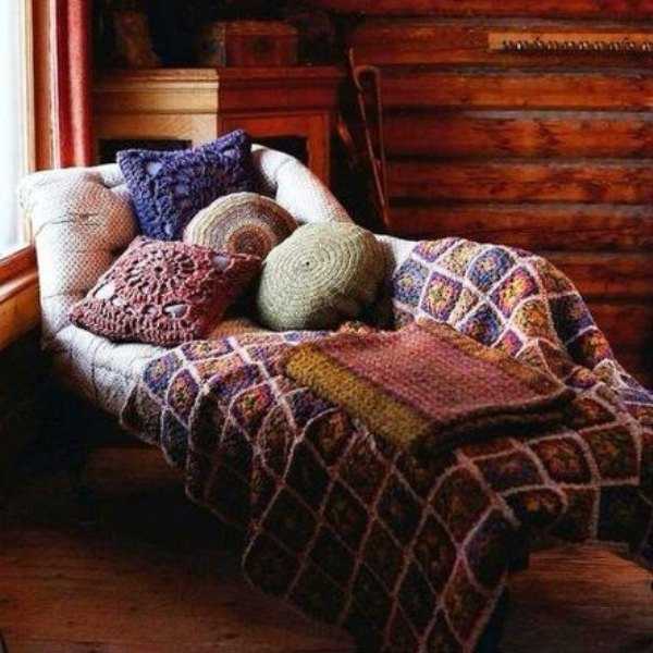 Для меня текстильные вещи — это уют. Их хочется трогать, хочется смотреть, хочется ощущать тепло. Если укрыться вязаным пледом, то чувствуешь себя, как в коконе — защищенно и приятно. Существует множество способов украсить пледом интерьер. Можно застелить половину двуспальной кровати. Или же всю кровать. Можно небрежно бросить на кресло, накрыть спинку дивана. В детской комнате яркий пледик просто необходим. Он может задать стиль и цветовой акцент всего помещения. А если интерьер вам уже порядком надоел — не обязательно делать ремонт, обновите текстиль, цветовые направление и получится совсем другая комната.
