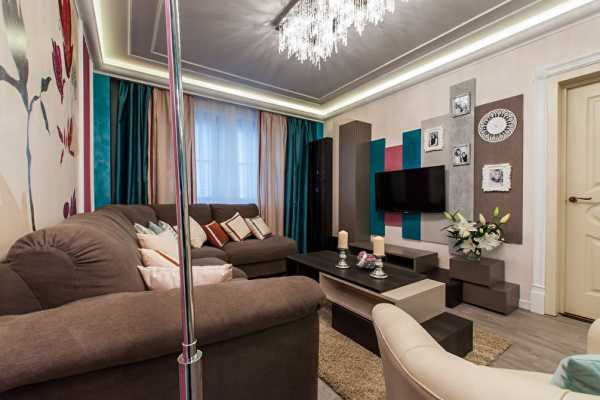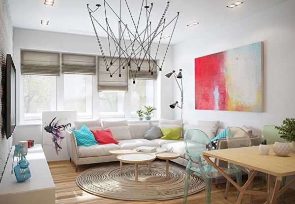 Если грамотно подобрать дизайн, то все это легко уместить даже на маленькой площади. Дизайнеры советуют владельцам такой квартиры применять в гостиной только светлые цвета, которые должны обязательно сочетаться друг с другом.