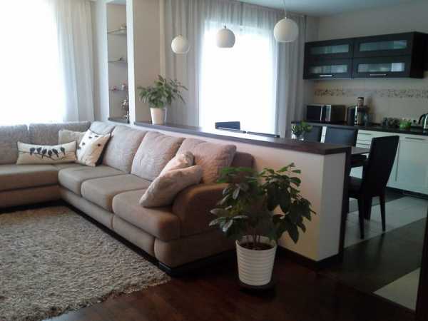 Комната делится на две зоны – в которой принимаются гости и отдыхают владельцы дома, и потому остро становится вопрос насчет того, как эти зоны между собой отделить и как сделать гостиную уютной?