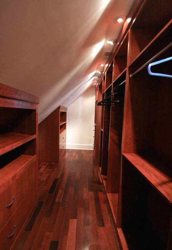 Гардеробная комната для спальни на мансардном этаже