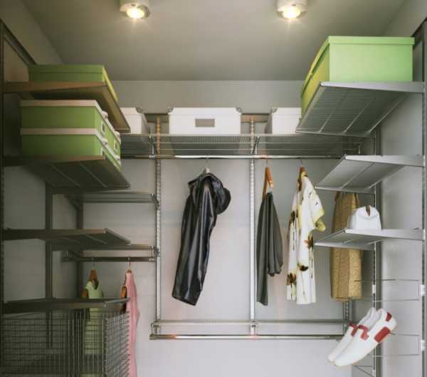 Внутреннее наполнение маленькой гардеробной комнаты 2 кв.м.: фото систем хранения