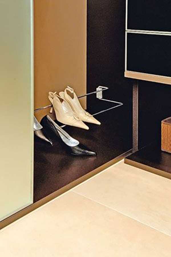 Выдвижная полка с ограничителями позволяет удобно разместить обувь в несколько рядов